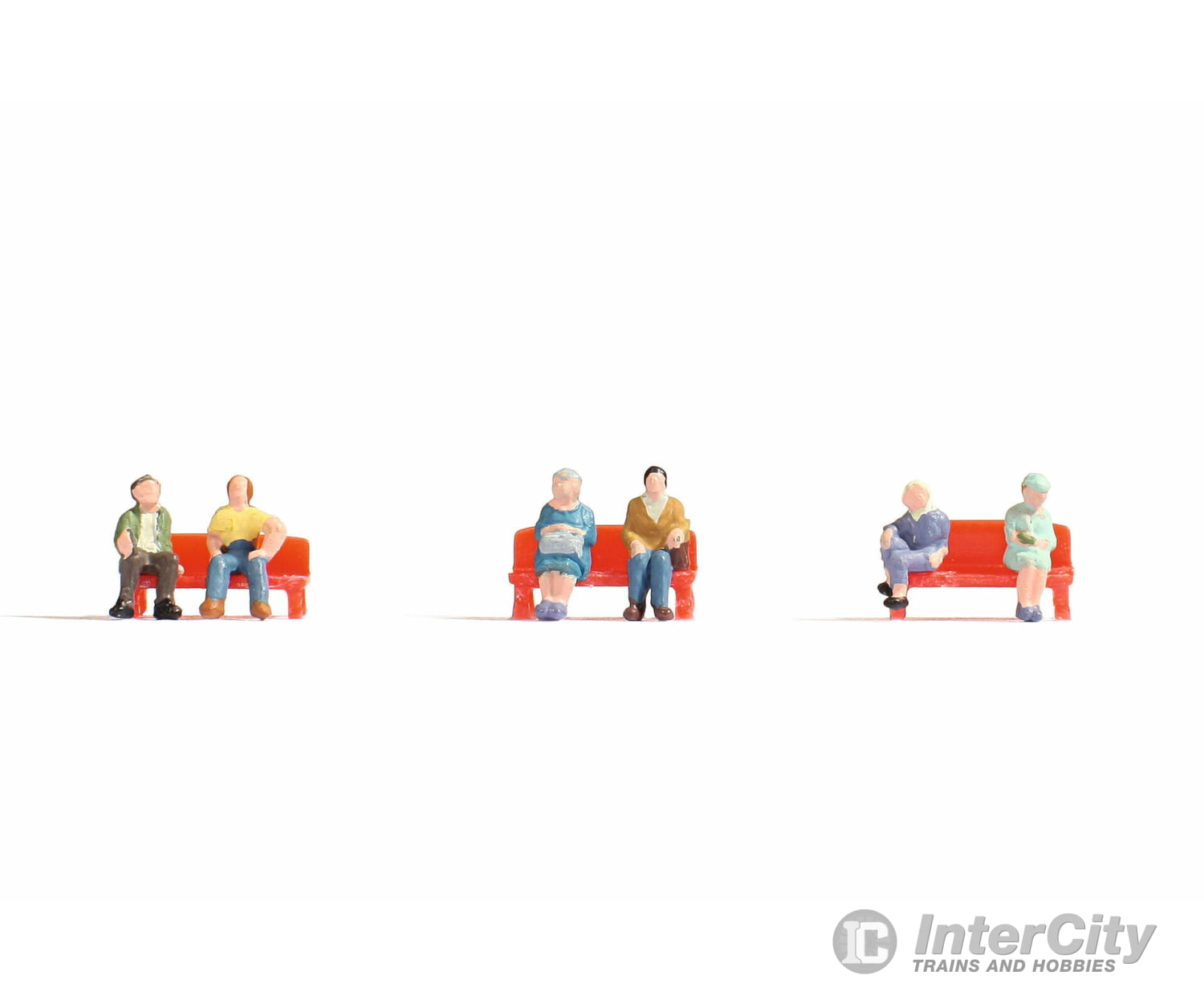 The »Sitting People « model figure set contains six figures in total - three women and three men. All of the figures are hand-painted and may be placed anywhere on your model railway layout or diorama. The NOCH Temporary Glue (ref. 61121) is the best choice for adhering the figures and then removing them at a later time without any issues. All figures are dressed in colourful outfits. Everything can be seen, from a yellow t-shirt, to a pair of blue pants, up to a turquoise-coloured dress. Pay attention to the small details, such as a grey hand bag or a turquoise-coloured hat.