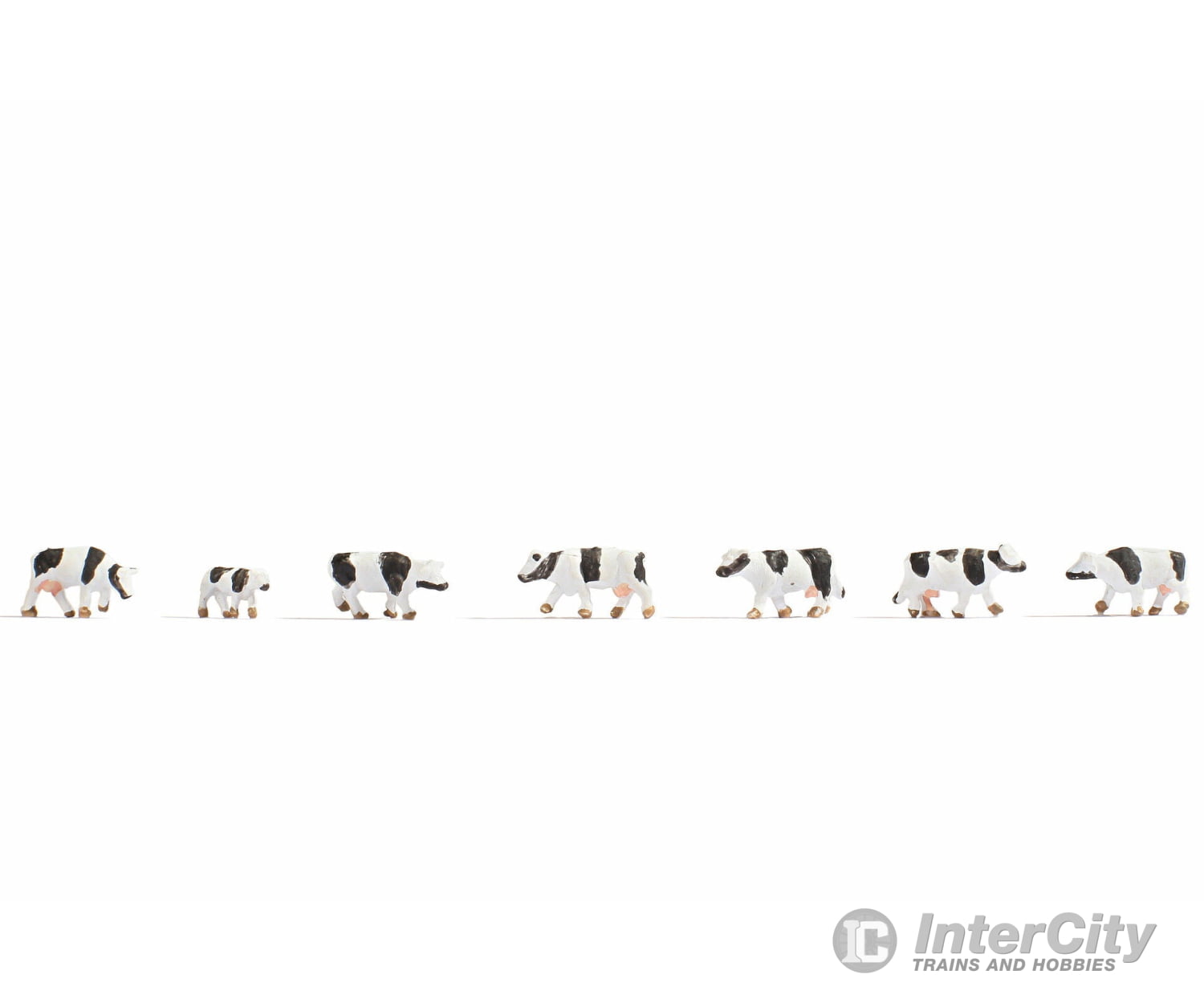The »Cows, black-white « model figure set contains seven cow figures. All of the model animals are hand-painted and be placed anywhere on your model railway layout or diorama. Anyone who wants to design and create a farm-themed scenery, best uses the model cows figures form NOCH. They are black and white, and there even is a small calf included in the set. This way you can realistically re-create any farm, just like the original. And those you want a little bit of diversity, may also use the »Cows, brown-white « figures (ref. 44251) or the »Cows, brown « figures (ref. 44252). The model landscaping hobby allows you to be creative and set no limit to your creativity.