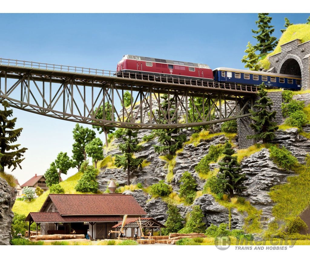 Bridges from NOCH enhance the attractiveness of every model railway layout. They can also be used in a variety of ways; for example, to traverse inclines, rivers and valleys. The 'Fish Belly Bridge' is ideal for making realistic landscape scenes even more customised and detailed. The 'Fish Belly Bridge' can be perfectly integrated into various landscape settings. The model railway makes its way across the stable bridge and safely crosses valleys, rivers and slopes. Bring a real eyecatcher to your diorama with the 'Fish Belly Bridge'.