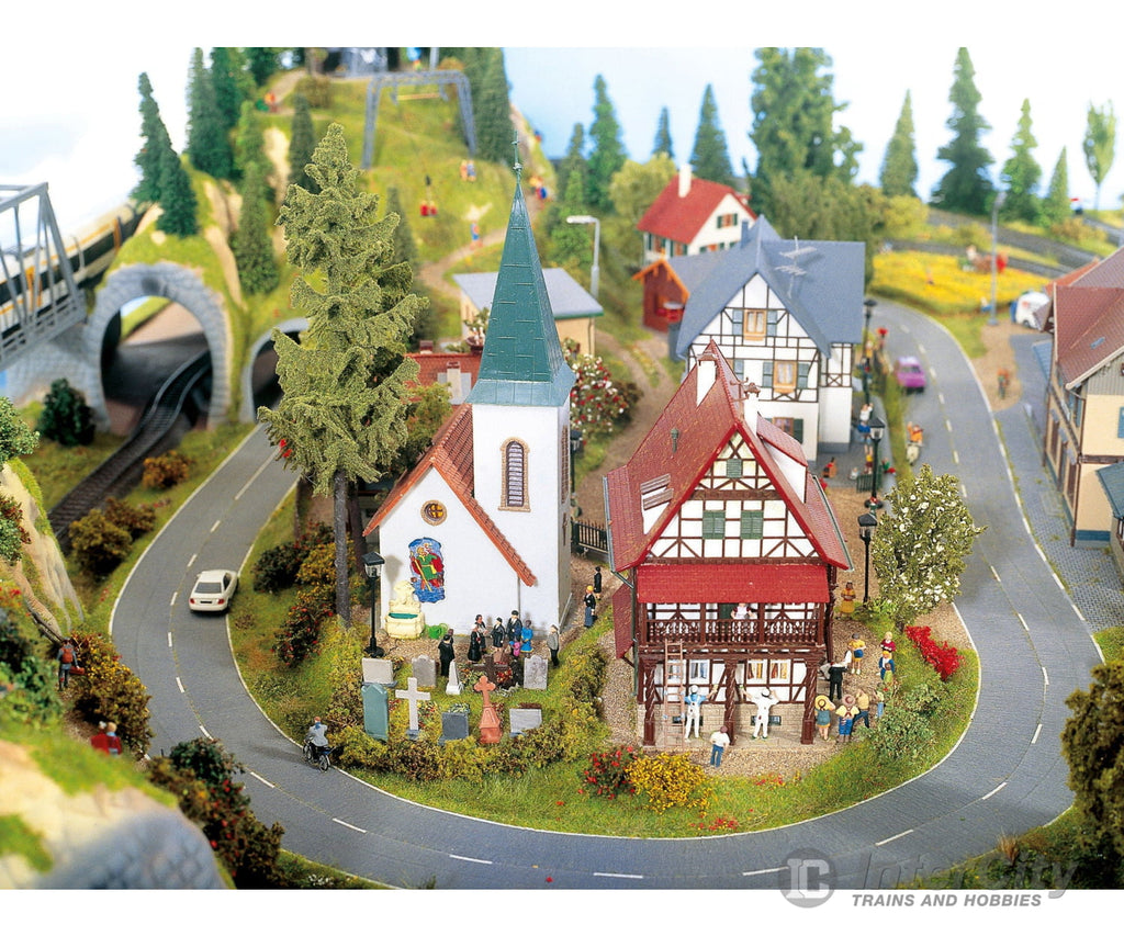 Scope of Delivery:• Base layout, hand-painted and with greening (with the Scatter Grass 'Summer Meadow', 2.5 mm), mounted on stable Wood Frame• Pre-cut underlay for the tunnels• Bridge construction kit for the H0 scale• Track plans for all applicable systems• "Preformed Layouts" DVD Guide