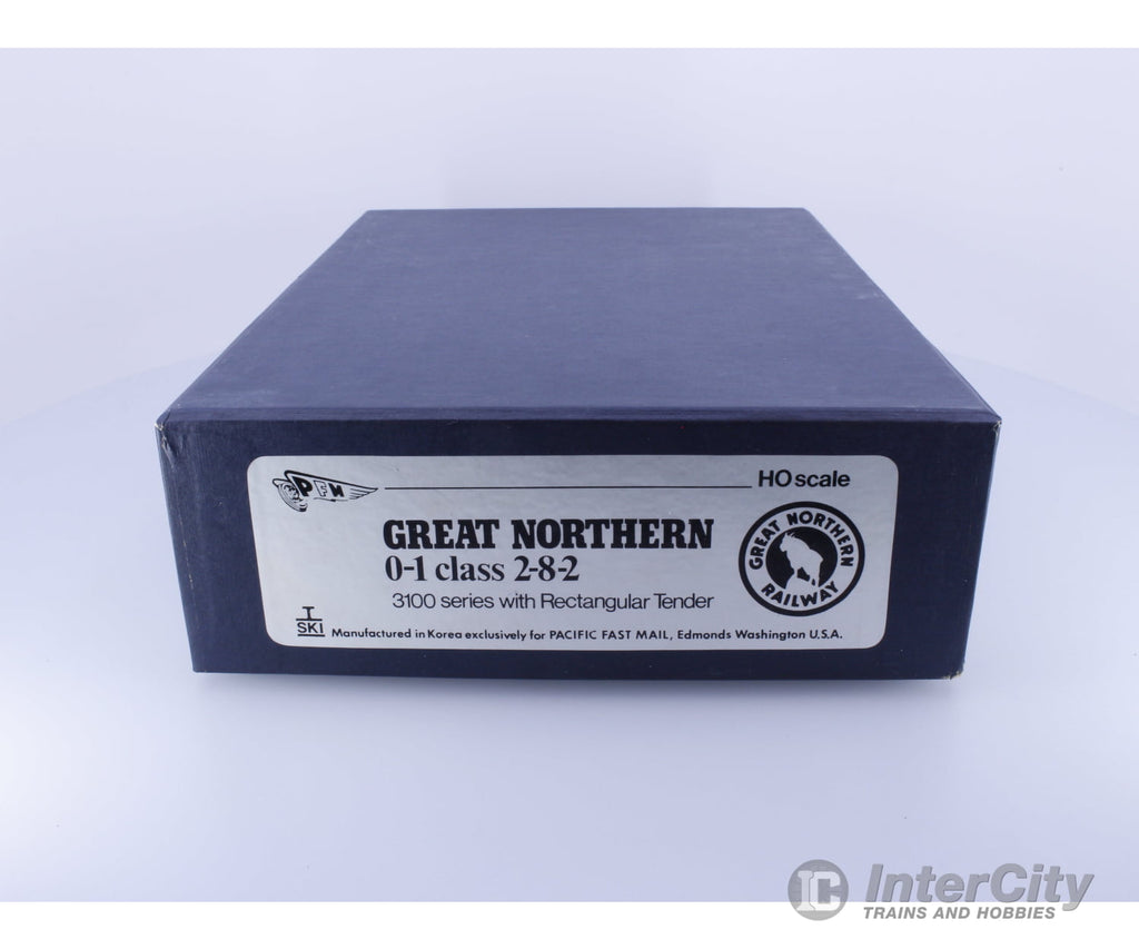 Pacific Fast Mail 01282 HO Brass 0-1 Class 2-8-2 3100 Series w Rectangular Tender Steam Locomotive #2 Great Northern (GN) Analog DC