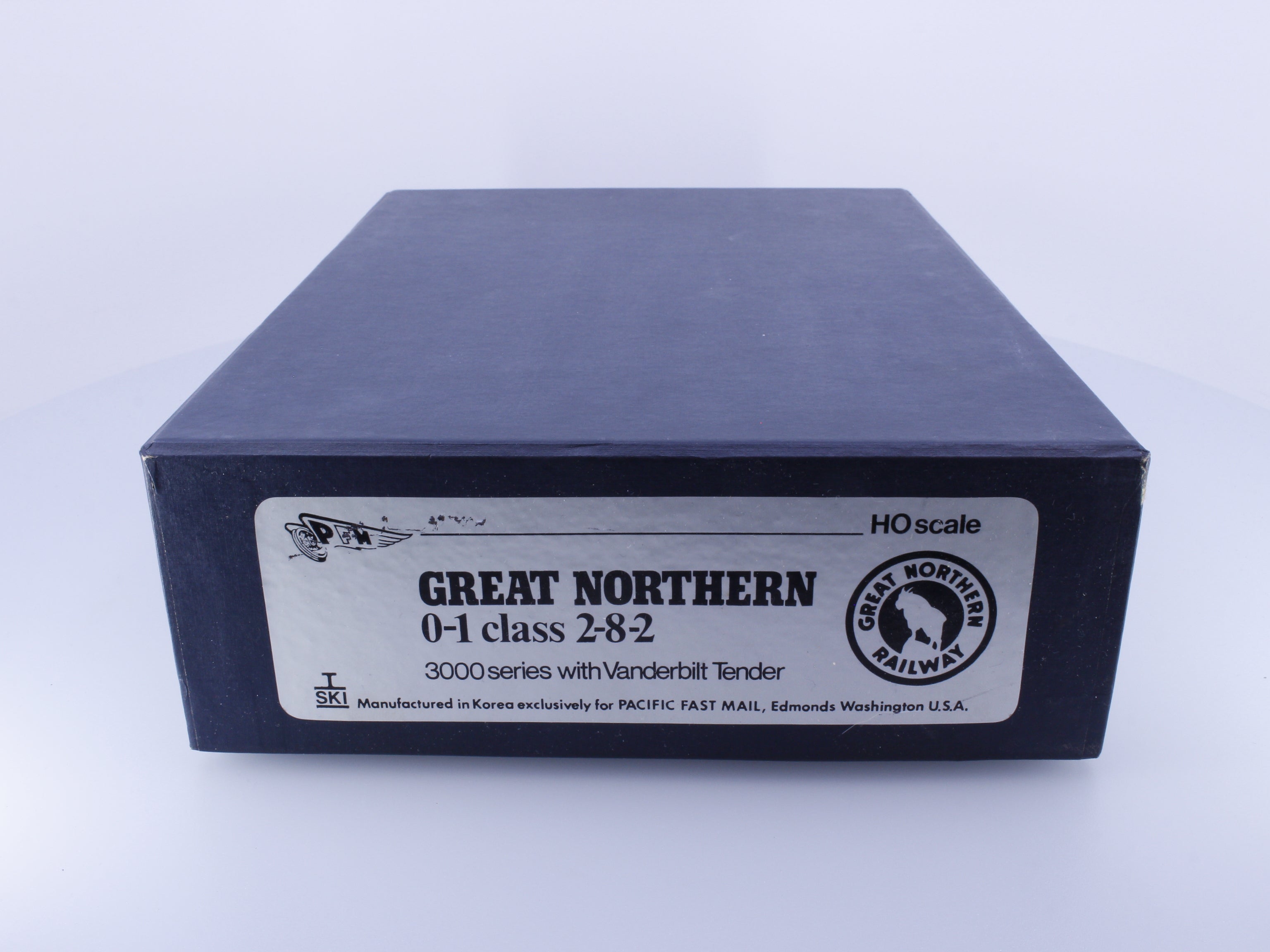 Pacific Fast Mail 01282V HO Brass 0-1 Class 2-8-2 3000 Series w Vanderbilt Tender Steam Locomotive Great Northern (GN) Analog DC