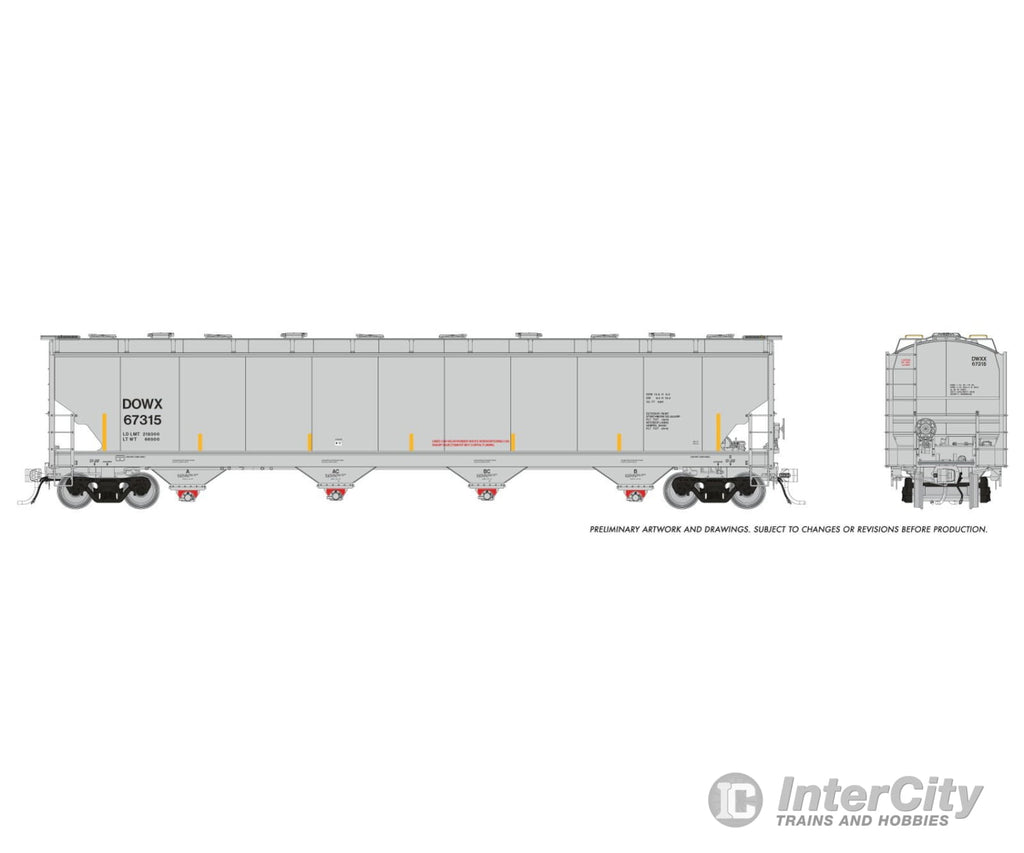 HO Scale Trinity 6221/6241 Plastic Pellet Hopper Introducing one of the most utterly common, unavoidable modern freight cars – the Trinity 6,221/6,241 cu. foot plastic pellet hopper. We challenge anyone to bring us an authoritative roster that truly includes every single one of these cars! We’ve been hard at work on data for both versions, and the early 6,221 cu. ft car alone has at least 10,000+ examples, while the later 6,241 cu. ft car, still in production today, far exceeds that total. If you are wondering – what car, have I seen it before? We respond: have you seen a mixed freight go by since the year 1997? If you have, the answer is, yes have seen this car. Did you see a mixed freight go by today? The answer today is probably yes, with several of these cars in it. Going back to the 1970’s, the first plastic pellet cars were built with more cubic capacity than grain cars to carry a lighter load. They’ve always been larger, with 4 bays instead of 3, and a greater overall length. A wide variety of car designs were built until the late 1990’s with capacity around 5,800 cubic feet. This includes all the plastic pellet car models you already have, with one exception, a model that came last came out 20 years ago. But times have changed. Transporting plastic pellets has changed. These days, shippers want “high cube” 6,200 cu. ft cars to fill, and in the late 1990’s, railcar manufacturers updated all of their car designs to that standard. In Trinity’s case, they lengthened and expanded their previous 5,851 design, which had several interesting variations. The earliest version is “boxy”, with no cutout on the side like a covered hopper usually has, except for one spot where a grab iron is. Eventually that smaller cutout gets larger, and then becomes normal, with a curve signature to all Trinity covered hoppers. Three of the four design variations of the Trinity 5,851 car. The final variation at the bottom has the design features of the 6,221 cu. ft. car at a smaller size. From an angle, it is easy to see the boxy frame that is a design feature of all Trinity plastic pellet car designs, from the earliest 5,851 cu. ft. car in the 1980’s to a newly built car in 2026. Beginning in 1997, Trinity begins to built a larger “high cube” 6,221 cu. ft design. It carries forward a signature feature all the way back from the earliest 1980’s 5,851 cars: a box-like frame around the entire carbody, with lip at each end above the coupler. To give a sense of how quickly high-cube 6,200 cu. ft. cars took over the market, the August 1999 edition of Freight Car Journal shows nearly 20,000 new cars built by all builders in the late 1990’s alone. In the last 25 years, that number has only continued to grow. Trinity has slightly tweaked its design into a 6,241 cu. ft. model, which we will also offer. This car is still in production today! Plastic pellet cars are an excellent way to fill out a mixed freight or ad an industry to a layout. In our research, we found real examples of customers with 1-car spots with 1 single Trinity 6,241 on the siding – an industry you can squeeze into any layout! An older 6,221 cu. ft. car with a fresh repaint. A new build 6,241 cu. ft car. Plastic pellet cars are an excellent way to fill out a mixed freight or ad an industry to a layout. In our research, we found real examples of customers with 1-car spots with 1 single Trinity 6,241 on the siding – an industry you can squeeze into any layout! Trinity 6,221/6,241 Features :