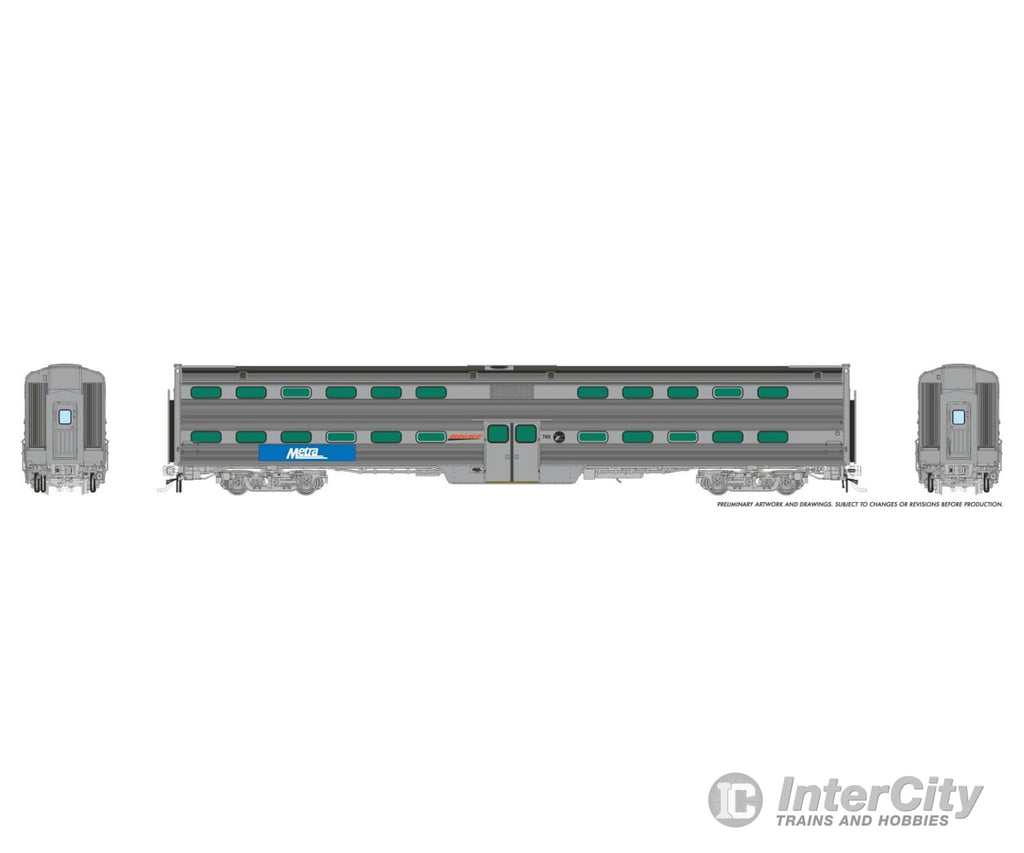 HO Scale Budd Rock Island & MILW Gallery Cars Photo Courtesy: Jeff Lassahn Photo Courtesy: Jeff Lassahn Introducing the other Budd gallery car fleet, first built for Milwaukee Road and Rock Island! Both railroads needed to replace aging commuter equipment, and Milwaukee Road ordered 32 coaches and 8 cab cars in 1961, followed by another order of 10 coaches and 12 cabs in 1964. Milwaukee’s cars ran behind HEP E units and other power in all kinds of consists, including off peak trains with just an E unit and a cab car! Notably, Milwaukee often used their fleet for other services, including Chicago-Milwaukee runs and special charters to Madison, Milwaukee, and more. Rock Island added to Milwaukee’s 1964 order, getting 5 cabs and 15 coaches in 1965. This only added to the already eclectic Rock Island commute fleet, with the stainless Budd cars contrasting against colorful Pullman Standard cars. The Budd cars offered a sleek, modern look next to one of their dazzling red and yellow E8As. Since their engines were equipped with Head End Power (HEP), the Budd consists didn’t require a power car. The Regional Transportation Authority, precursor to Metra, placed a huge order for 98 Budd coaches and 37 Budd cab cars in 1978. These cars came without oval windows on one side, and subtle changes to the ends and underframe. Additionally, 20 coaches were ordered for BN lines with outside brake clasp trucks; these now feature BNSF logos. Overall, these cars now make up the largest coach fleet on the Metra roster, as all cab are now trailing coaches. We are pleased to offer a huge variety of choices – Metra “Metropolitan Rail” sets featuring the first Metra Logo, Metra sets with ditchlights on cab cars, and several varieties of individual coaches. Another exciting option are two different versions of “dummy” cab cars: “Blanked” ex-MILW Cabs will all traces of the cab removed, and “intact” ex-RTA Cabs where only select items like the horn have been removed. Rapido HO Scale Budd Gallery Cars feature: