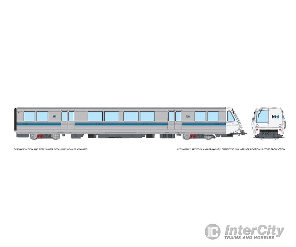HO Scale BART Legacy Fleet Please welcome back the BART Legacy Cars! Since its opening in 1972, Bay Area Rapid Transit trains have moved commuters and riders around the San Francisco Bay Area using these iconic cars. These pioneering cars were designed specifically to reduce association with aging transit equipment used in other cities. Instead of using traditional railcar manufacturers, BART signed a contract with Rohr Industries to create their first transit vehicles and contracted industrial design firm Sundberg Ferar to develop the trains’ futuristic look. Besides being recognized for its status as a ground-breaking achievements of civil engineering, BART is also known for its roster of very distinctive rolling stock. The original cab and center cars (A Cars and B cars) built by Rohr Industries between 1968 and 1975 were mechanically identical, with the exception of the cab overhanging one end of the A cars. Despite being the face of the system, the streamlined fiberglass cab became an operational issue as they limited flexibility in building trainsets. To resolve this, the first of the “C Cars” were delivered in 1987 by Alsthom, featuring a more traditional flat cab, allowing them to be used both on the ends as well as in the middle of the consist. Additional C Cars were built by Morrison-Knudsen between 1994 and 1996. BART has run these trains for 50 years, with the external appearance largely unchanged since the initial concepts toured around the Bay. With BART structures paralleling the Santa Fe, Southern Pacific, and Western Pacific’s Bay Area lines, these have continually served as a sharp contrast to the often grimy freight service through the area, with sleek aluminum cars flying past freight drags and commuter service on elevated viaducts paralleling the railroad right-of-way. The BART Legacy Fleet (A, B AND C Cars) Features:
