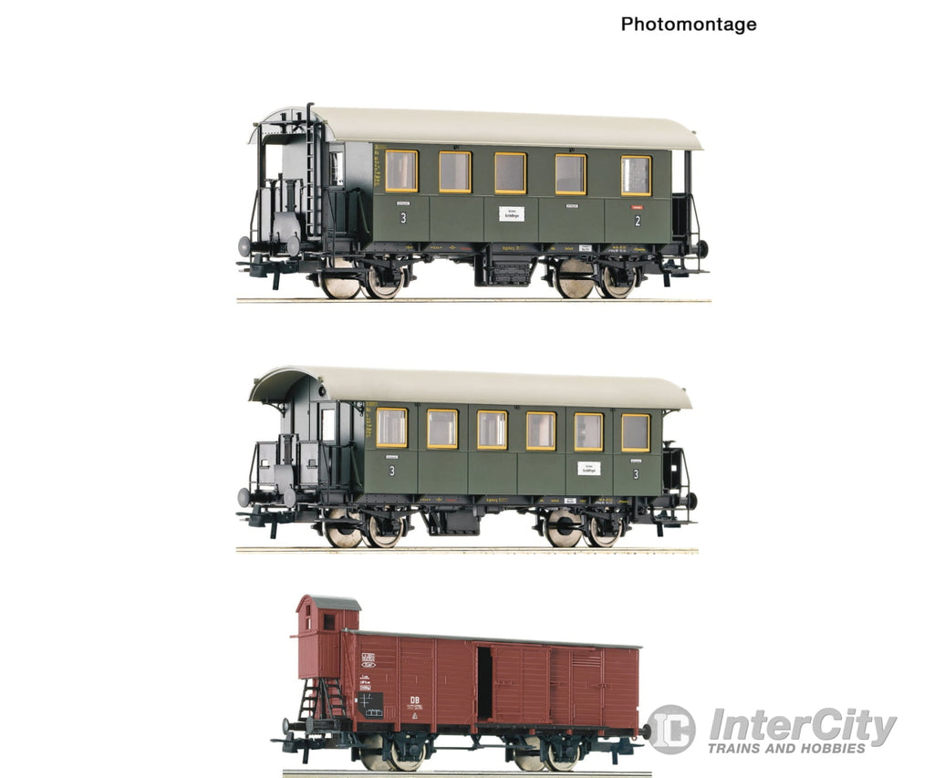 Consisting of a 2nd/3rd class passenger coach, type BCi, a 3rd class passenger coach, type Ci, and a covered freight wagon with a brakeman's cab, type G.