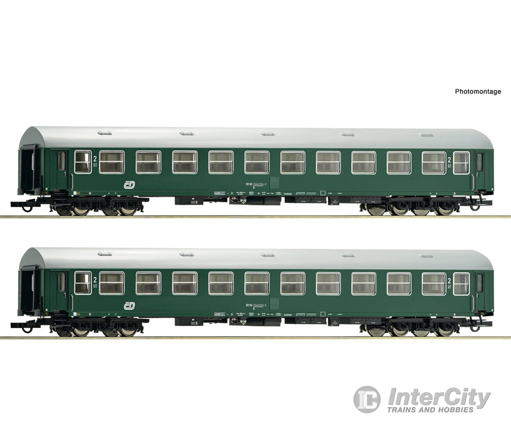 Wagon set with two 2nd class passenger coaches, type B, of the Czech State Railways.
