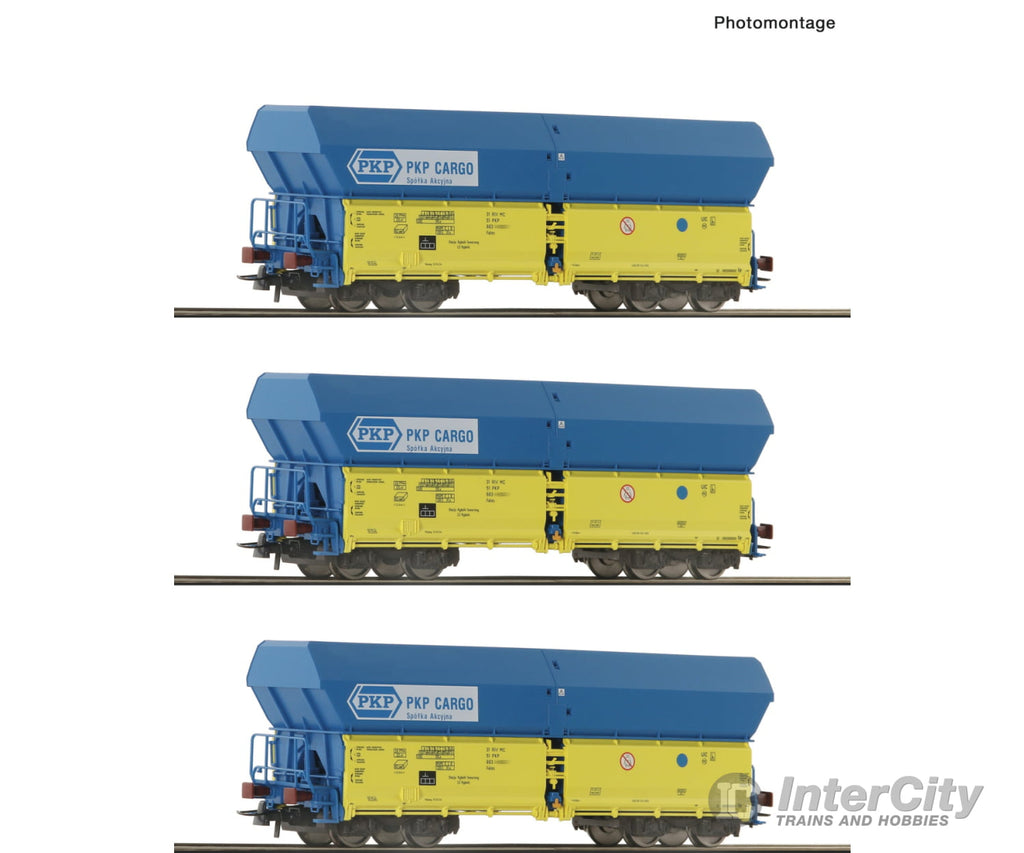 Set of three self unloading hopper wagons, type Falns, of the PKP.