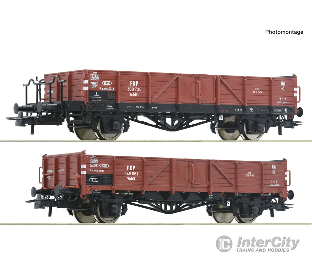 Wagon set with two open freight wagons, type Wddt, of the Polish State Railways.