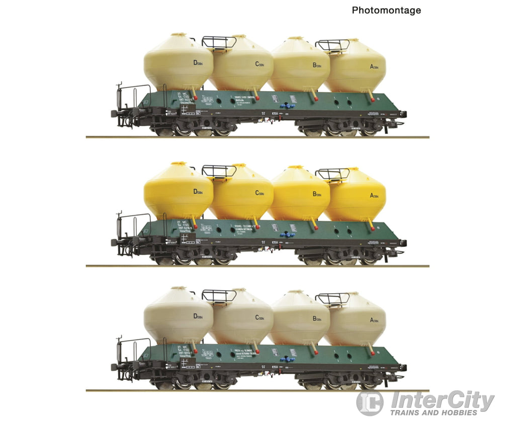 Set of three silo wagons, type Raj, of the Czechoslovakian State Railways.