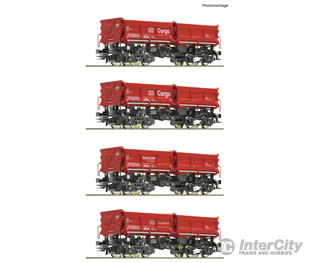 Set of four dump wagons, type Fans 128, of the Deutsche Bahn.