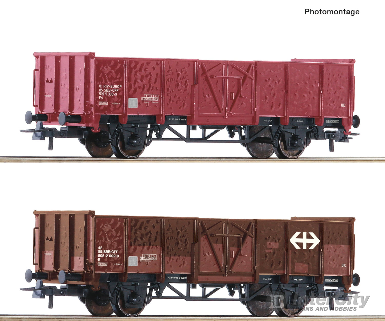 The set contains a wagon in red-brown livery, type Es and a wagon with touch-up spots, type E.