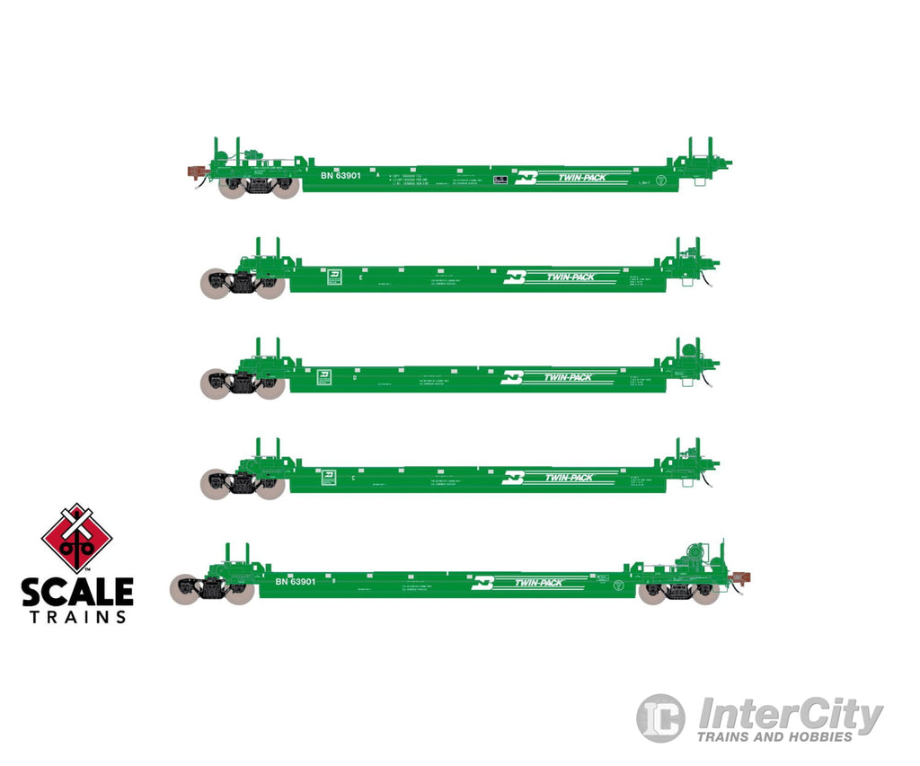 ScaleTrains SXT40086 Rivet Counter HO Scale Pullman-Standard Trinity Backpacker Well Car Set (5), Burlington Northern/Twin-Pack 63901