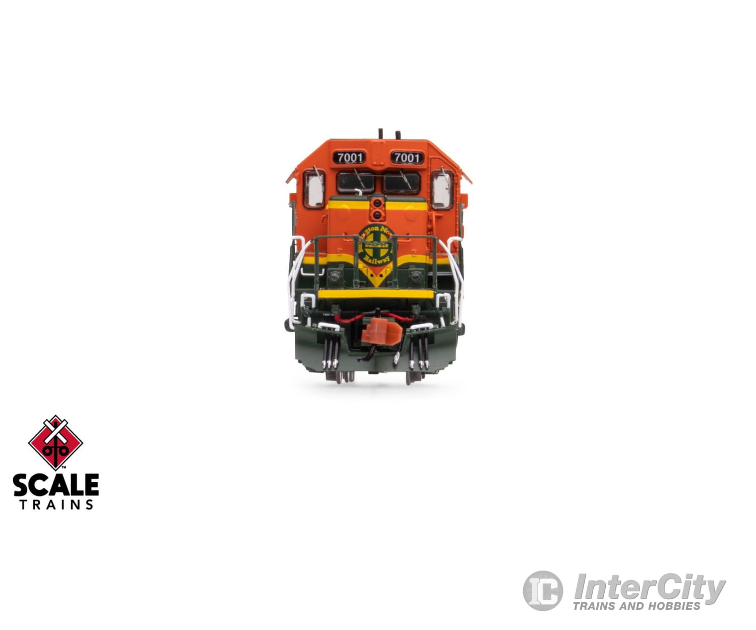 - Front EMD-style low pilot plow with grab irons and without multiple unit (MU) hose doors