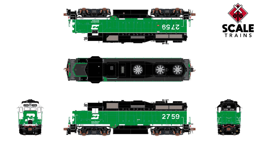 ScaleTrains SXT40929 Rivet Counter HO Scale EMD GP39E, Burlington Northern/White Face/Strobe Lights 2759 DCC & Sound Equipped