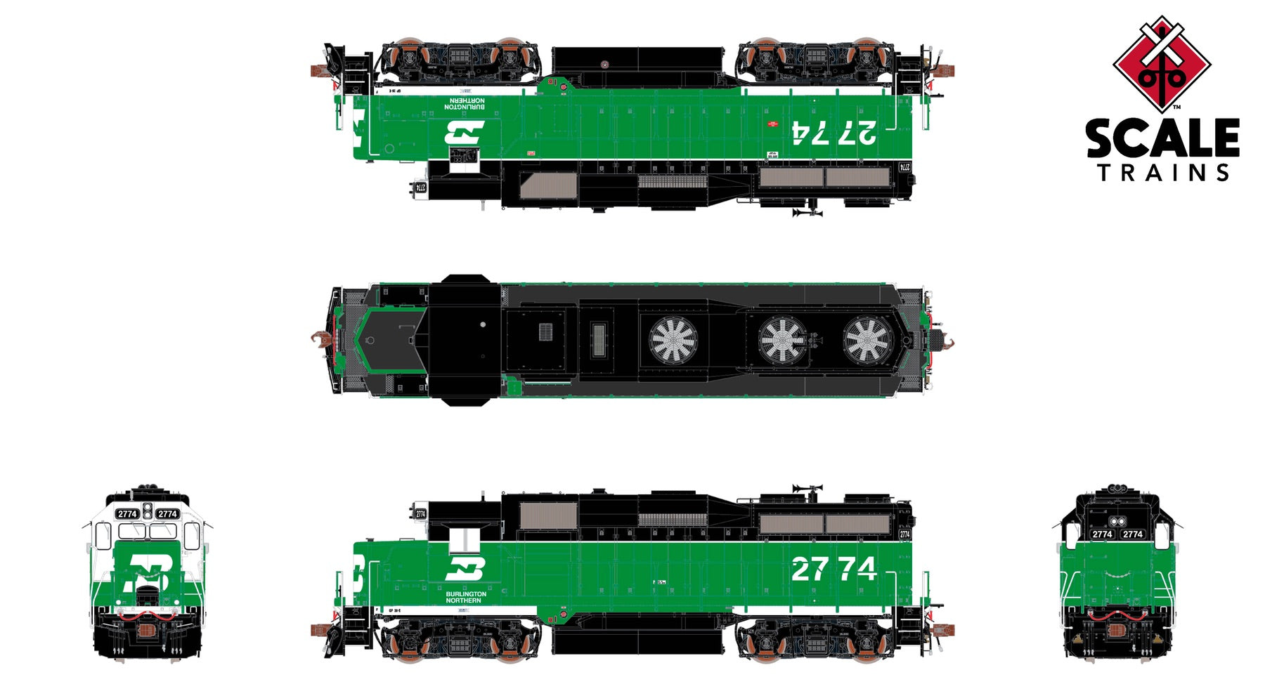 - LED-illuminated “hemisphere” walkway lights on hood rear end and at end of raised walkway duct; EMD slot-style lights on front short hood end*