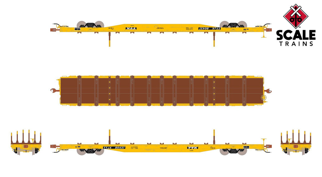ScaleTrains SXT41746 Rivet Counter HO Scale BSC F68BH Finger Rack Flatcar, TTX/Yellow Full Repaint/1991 Speed Logo 80413