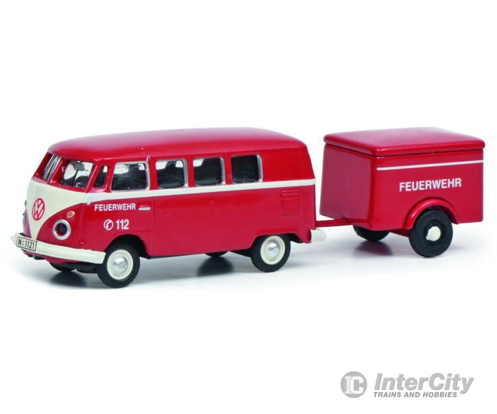 Schuco 452661800 HO VW T1 Bus w. Trailer Fire Engine