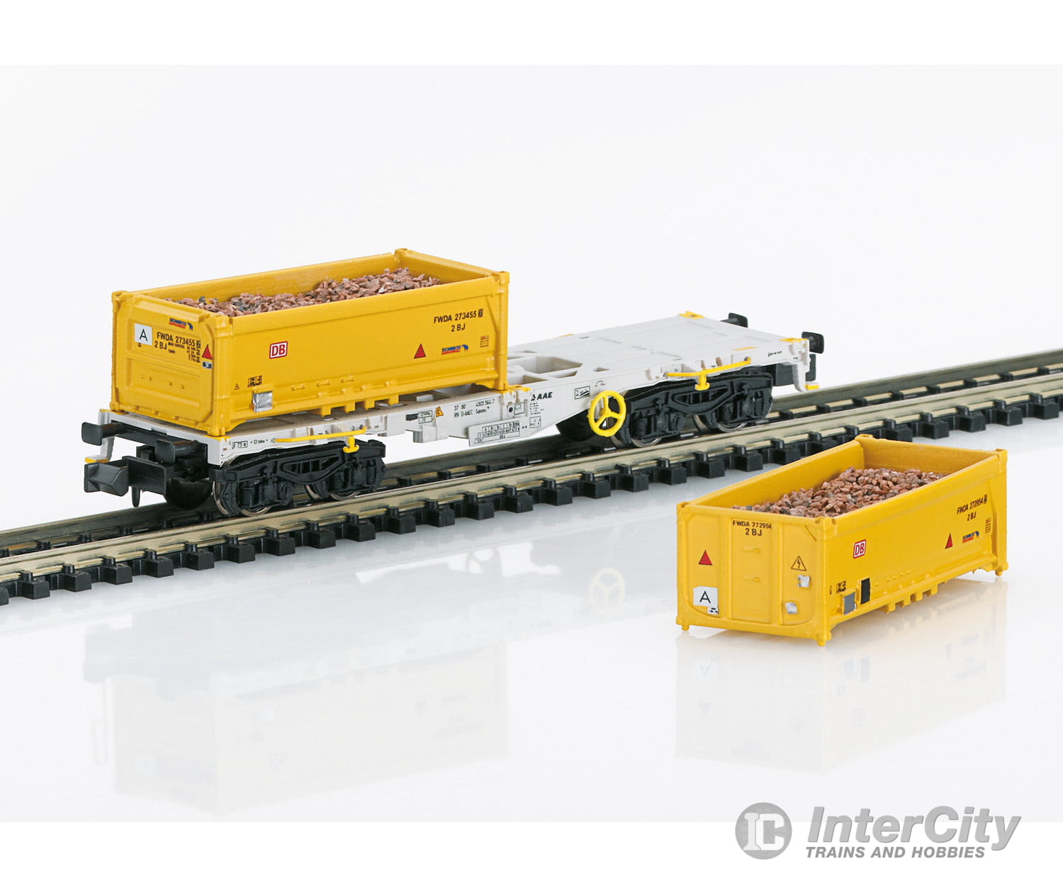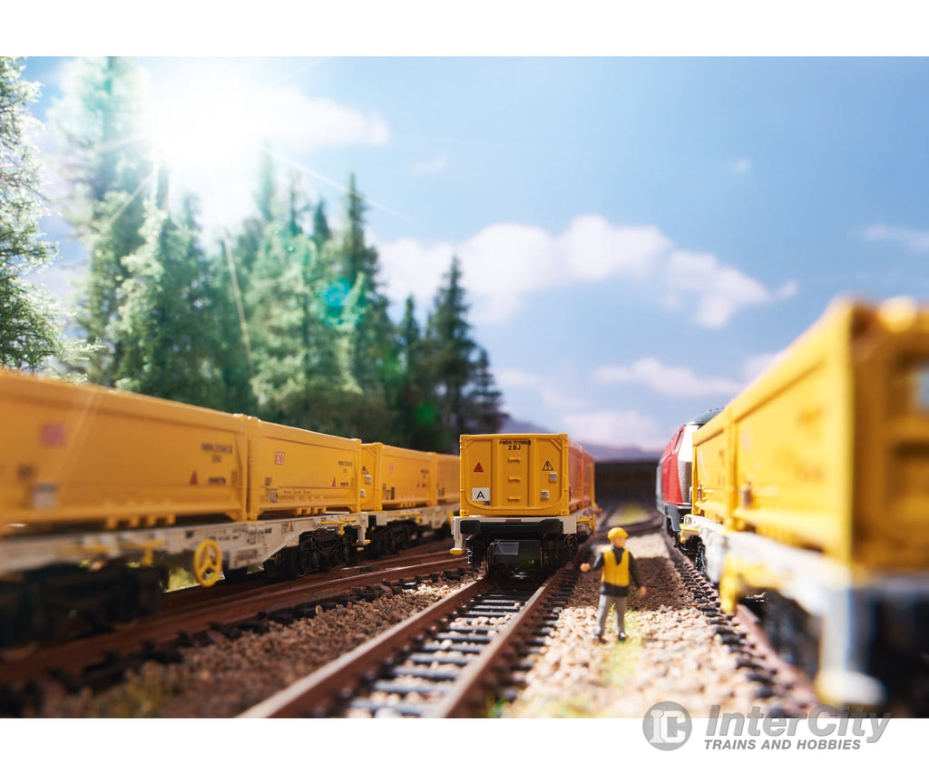 Model: The cars are new tooling. They have die-cast zinc frames, type Y 25 trucks, and close coupler mechanisms. They are each loaded with two yellow tubs for earth removal from Stuttgart 21. The cars are individually packaged and there is a master package. Total length over the buffers 510 mm / 20-1/16.