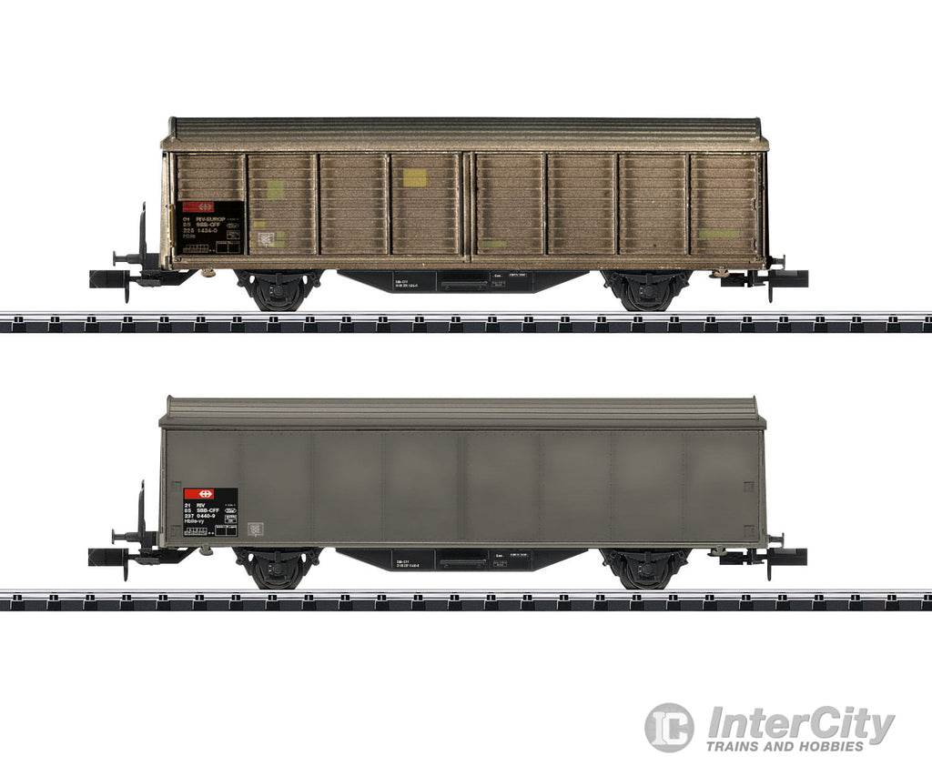 Prototype: Two (2) Swiss Federal Railways (SBB/CFF/FFS) type Hbis-v sliding wall boxcars. Designs with smooth walls and with walls having a raised pattern.