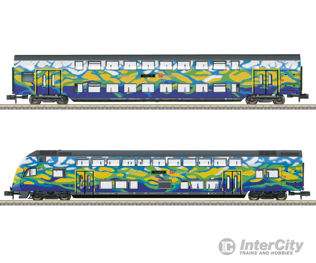 Prototype: 1 x type DBpza 753.5 bi-level intermediate car and 1 x type DBpbzfa 765.6 bi-level control car of the German Federal Railroad (DB AG), operated by DB Used Train. The cars look as they currently do in era VI.