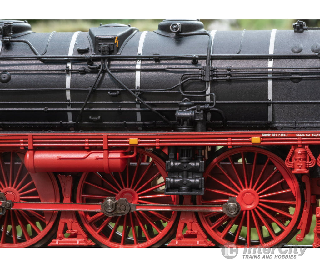 Model: The locomotive has a digital decoder and extensive sound functions. It also has controlled, high-efficiency propulsion with a flywheel, mounted in the boiler. One axle powered, three axles powered using side rods. Traction tires. The locomotive and tender are constructed mostly of metal. The locomotive has a factory-installed smoke unit with dynamic smoke exhaust, which varies with the speed. Dual headlights change over with the direction of travel, will work in conventional operation, and can be controlled digitally. Cab lighting and firebox flickering can be controlled separately in digital operation. Maintenance-free, warm white and red LEDs are used for the lighting. There is a buffer capacitor. There is a close coupling with a guide mechanism between the locomotive and tender. There is a close coupler with a guide mechanism in an NEM pocket on the back of the tender. The buffer height on the locomotive and tender conform to the NEM. The minimum radius for operation is 437.5 mm / 17-1/4" radius. With slight limitations Radius 1 operation in also possible. Piston rod protection sleeves and brake hoses are included.
