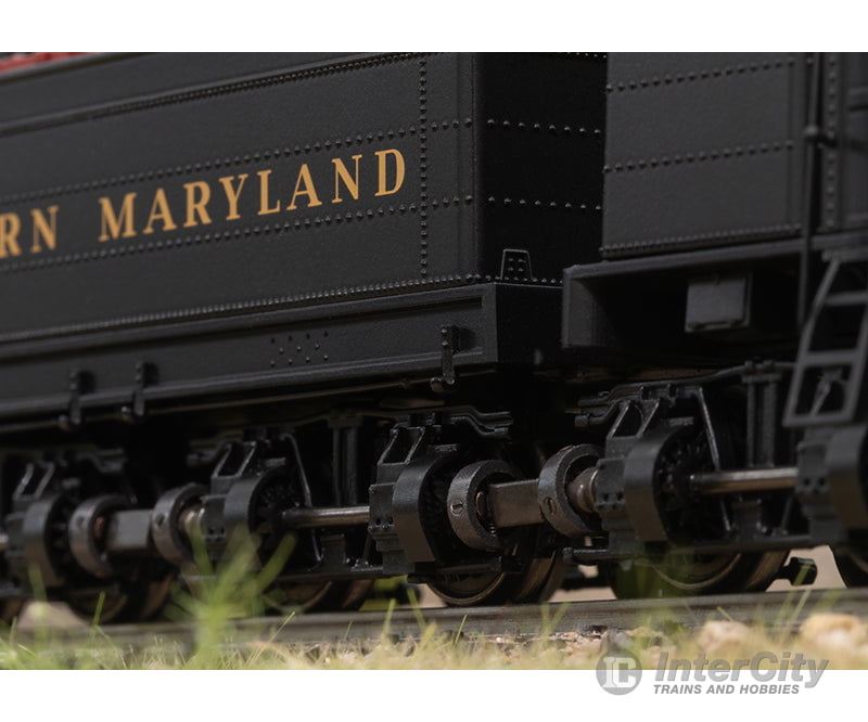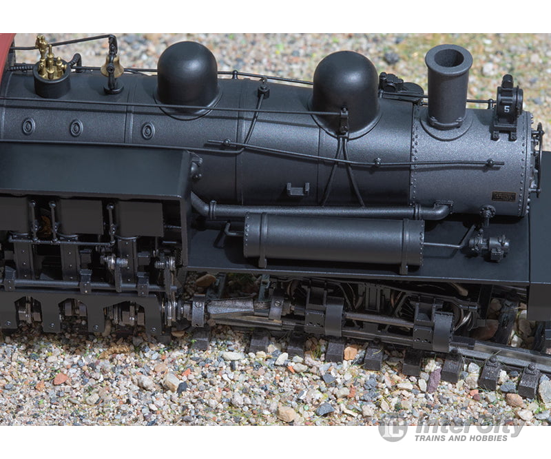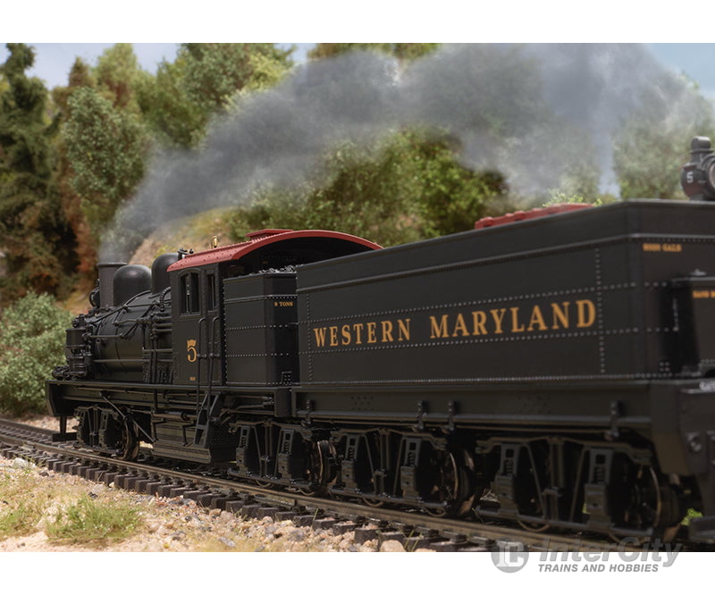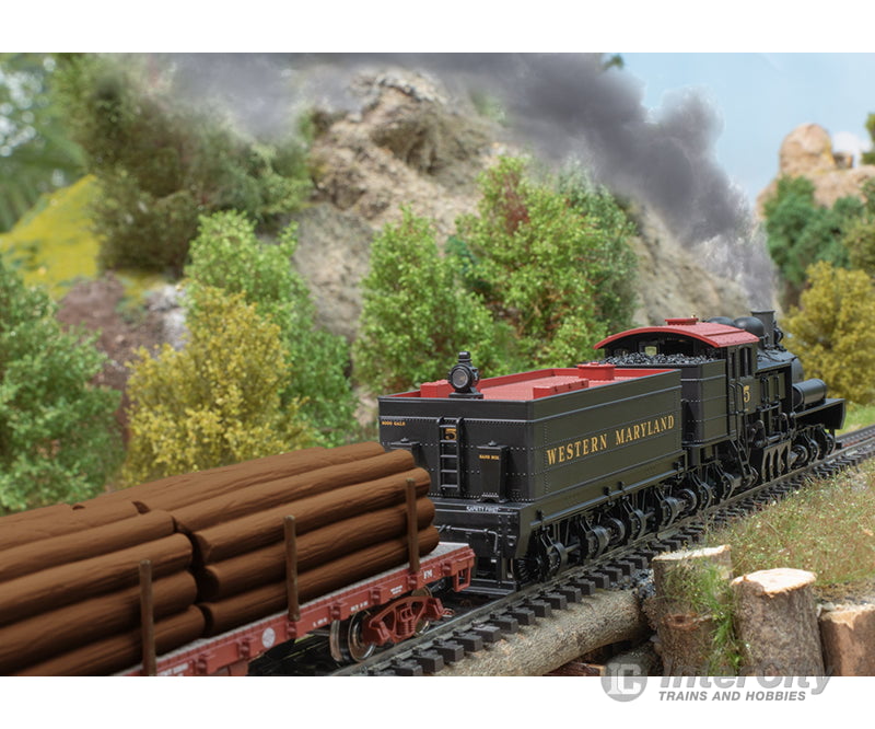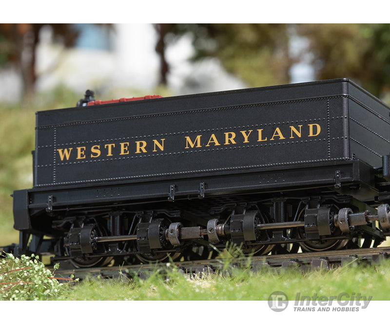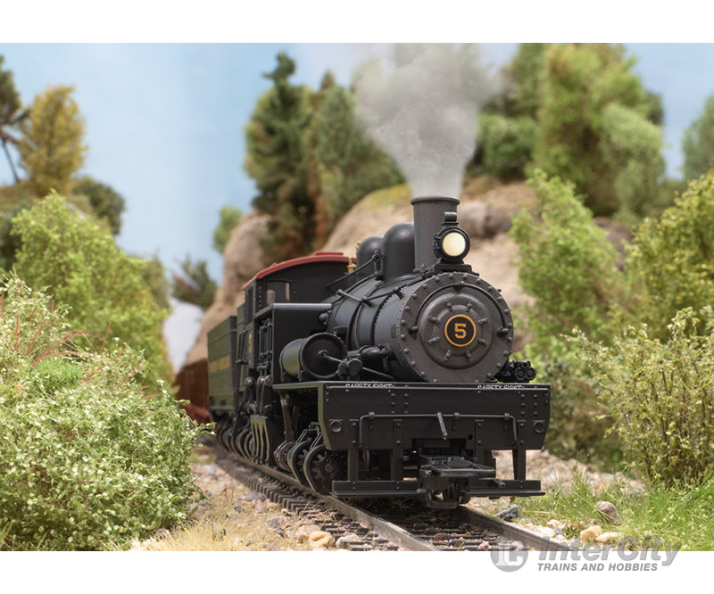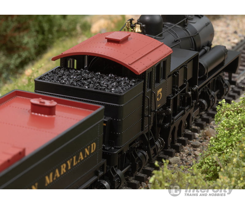 Prototype: US Shay design Class D gear drive steam locomotive. Version with 4 powered trucks. Drive using crankshafts to articulated shafts and using beveled gears on the trucks. Characteristic boiler offset to the left included. Used mostly on American field and logging railroads on routes with sharp curves and steep grades. Western Maryland Locomotive Number 5. The locomotive looks as it did in the Forties.