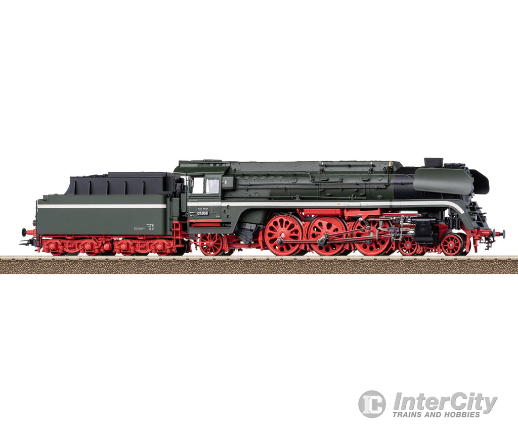 Prototype: Class 01.5 express steam locomotive with a type 2´2´T34 coal tender. "Reko" version of the German State Railroad of the GDR (DR/GDR). Dark green basic paint scheme with white decorative striping. Also included, Boxpok wheels, special design Witte smoke deflectors for the class 01.5, continuous dome streamlining, and side cladding of the running boards. Locomotive road number 01 504. The locomotive looks as it did around 1964.