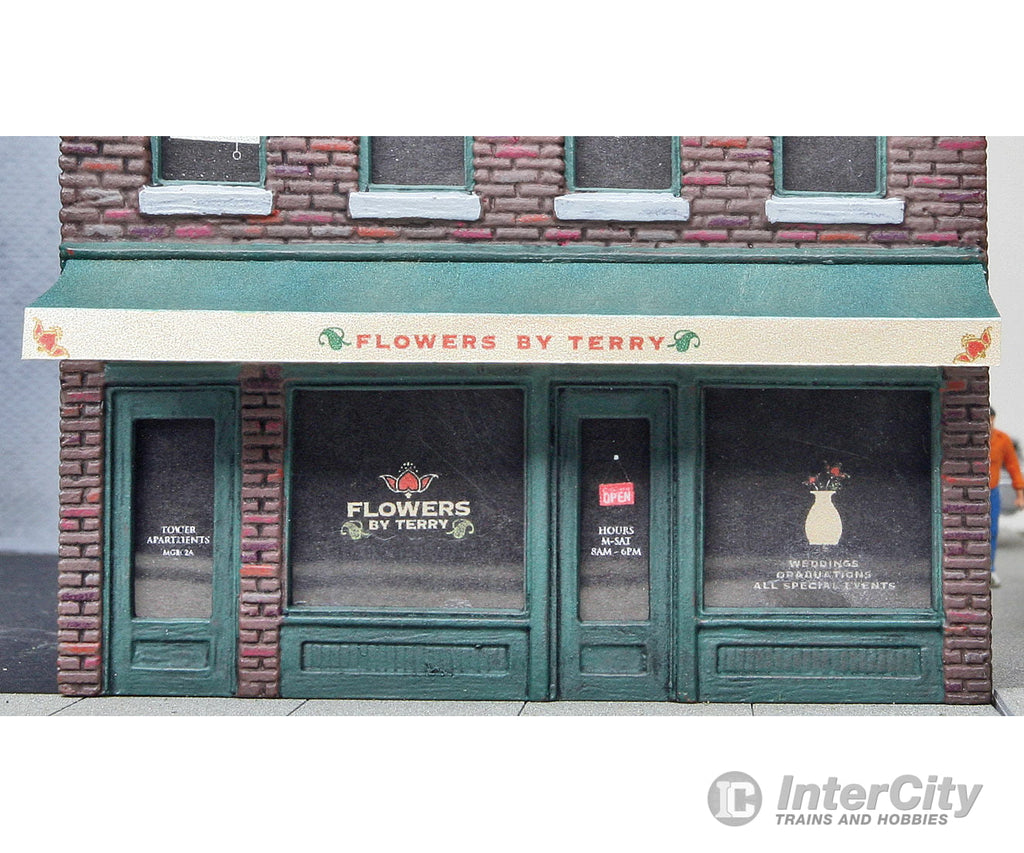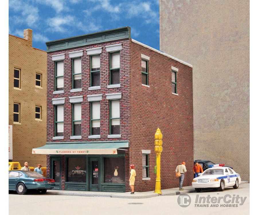 Flowers by Terry is part of the selection of Walthers Cornerstone brick storefront building kits patterned after those you'll find in towns across the continent. Main Street hasn't changed much over the years and brick structures like this florist's shop are built to last. Buildings tell a lot about your layout, especially in a business district adorned with colorful signs that set the time and place. Flowers by Terry combines a business on the first floor and apartments or offices on the second and third floors - typical of buildings constructed in the late 1800s through the 1930s and still in use today. Personalize your model with paint from your dealer, and add the finishing touch with the colorful signs in this easy-to-build kit. The finished kit measures: 3 x 4 x 4-3/8" 7.6 x 10.2 x 11.1cm