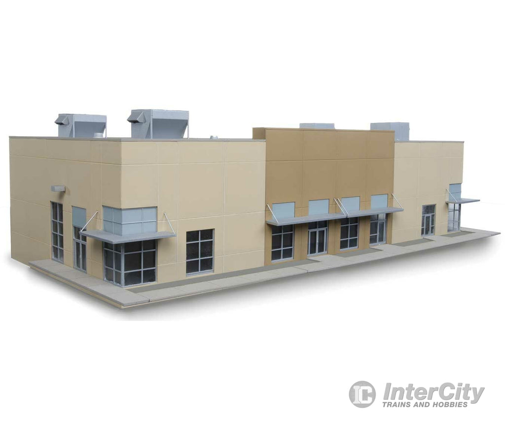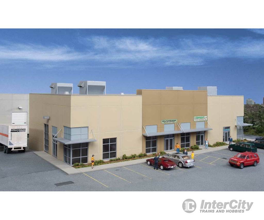 A fixture of contemporary industrial parks, the Cornerstone Small Business Center is a perfect location for any HO Scale start-up company! Based on similar tip-up style structures seen all across North America, the kit includes a modern front facade with large office-style windows and entry doors, as well as a raised sidewalk, while the back wall provides easy access and a drive-in door for trucks