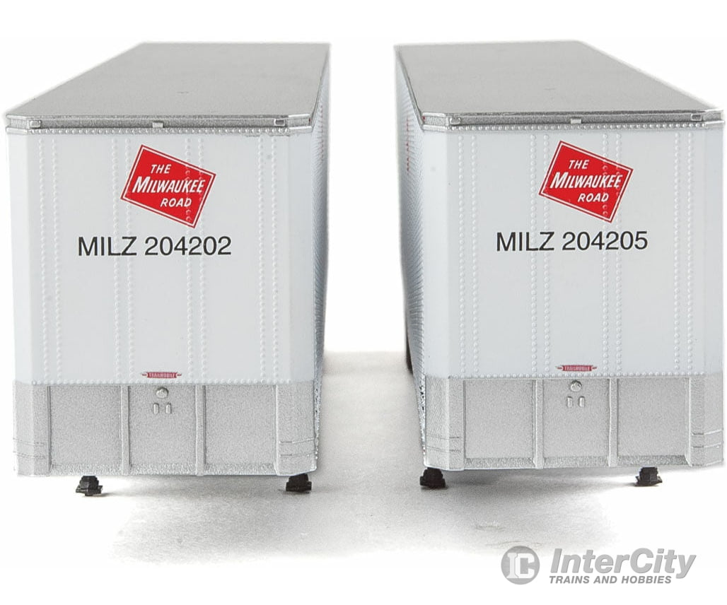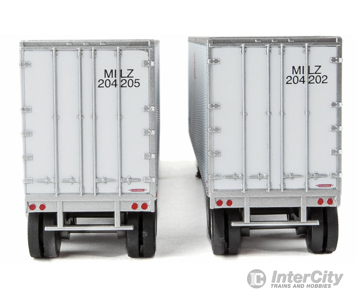 Walthers SceneMaster 40' 1970s-style Trailmobile Dry Van 2-Packs are a great addition to vintage trailer-on-flatcar (TOFC) service and period HO highways from the 1970s to the 1980s. Fully assembled and ready for service, each includes two matching trailers featuring: