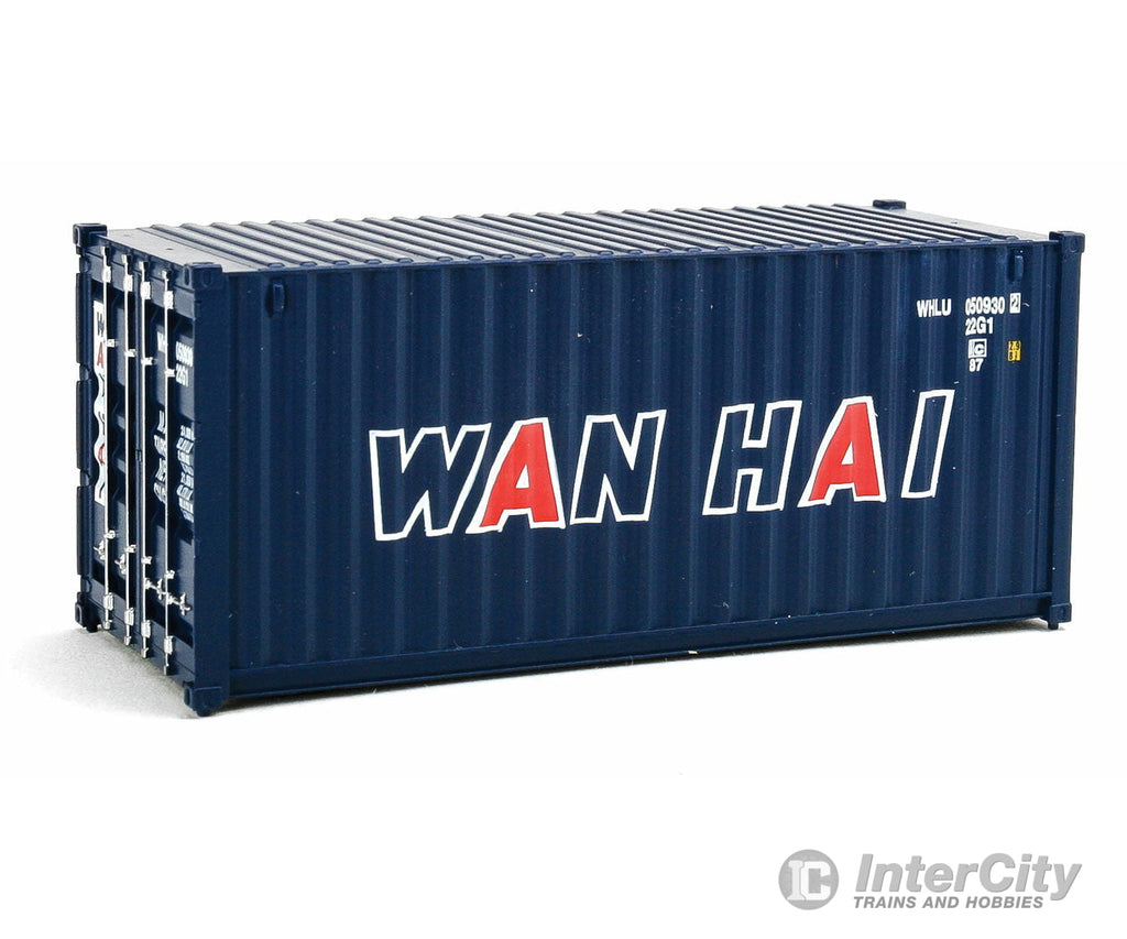 Walthers SceneMaster 8066 20' Corrugated Container - Assembled -- Wan Hai (blue, white, red A Lettering)