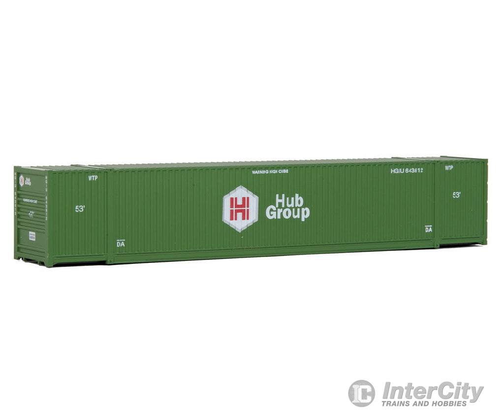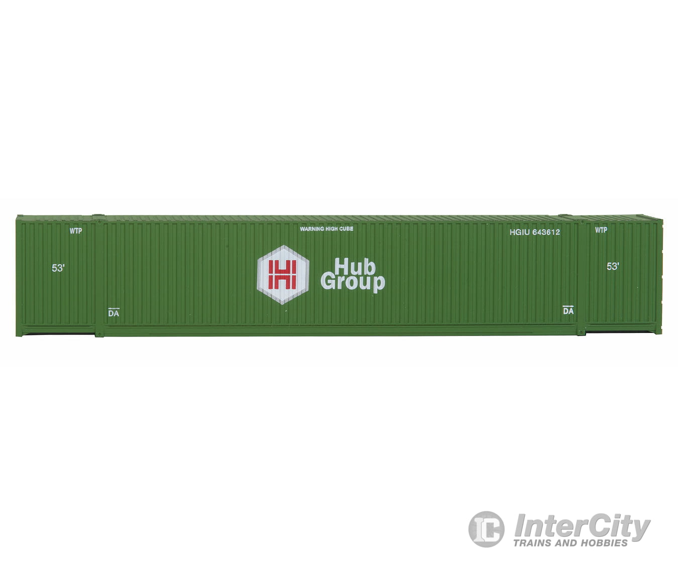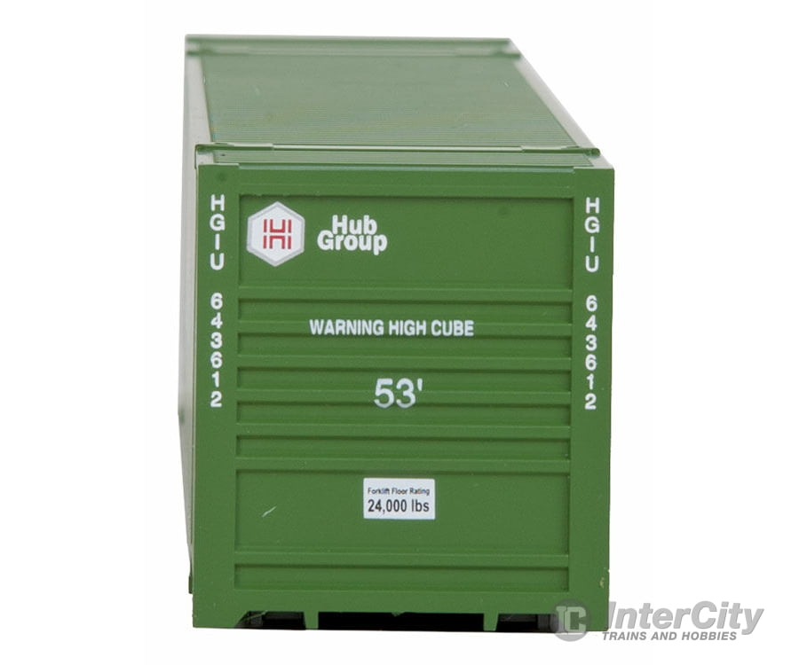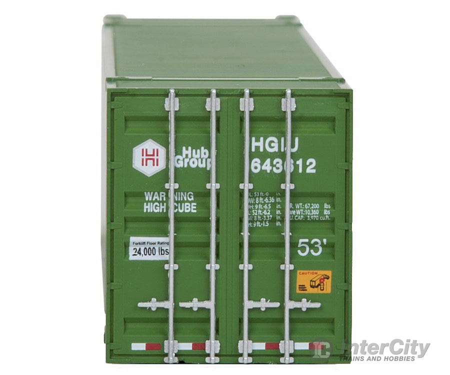 Walthers SceneMaster 8505 53' Singamas Corrugated Side Container - Ready to Run -- Hub Group (green, white, red)