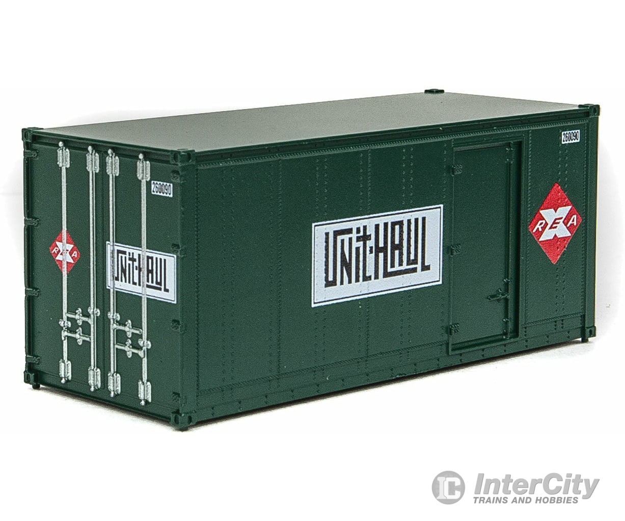 Expand container traffic on your 1960s and 70s era HO layout with these two-packs of 20' SceneMaster containers! Based on equipment used by Railway Express Agency (REA), they were equipped with both standard end doors, as well as a single side-door to facilitate loading or unloading on busy city streets. Other features include: