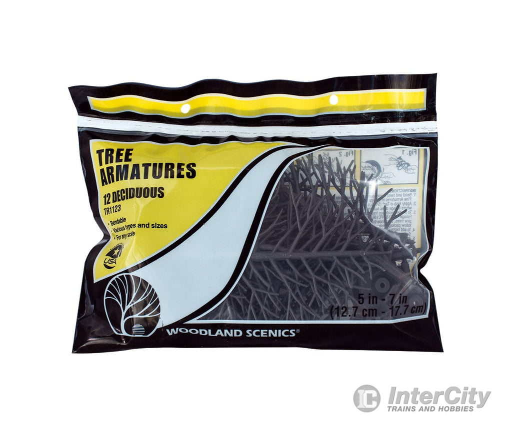Bend plastic Tree Armatures into any shape. This package contains 12 Deciduous Tree Armatures from 5" - 7" (12.7 cm - 17.7 cm) in height.