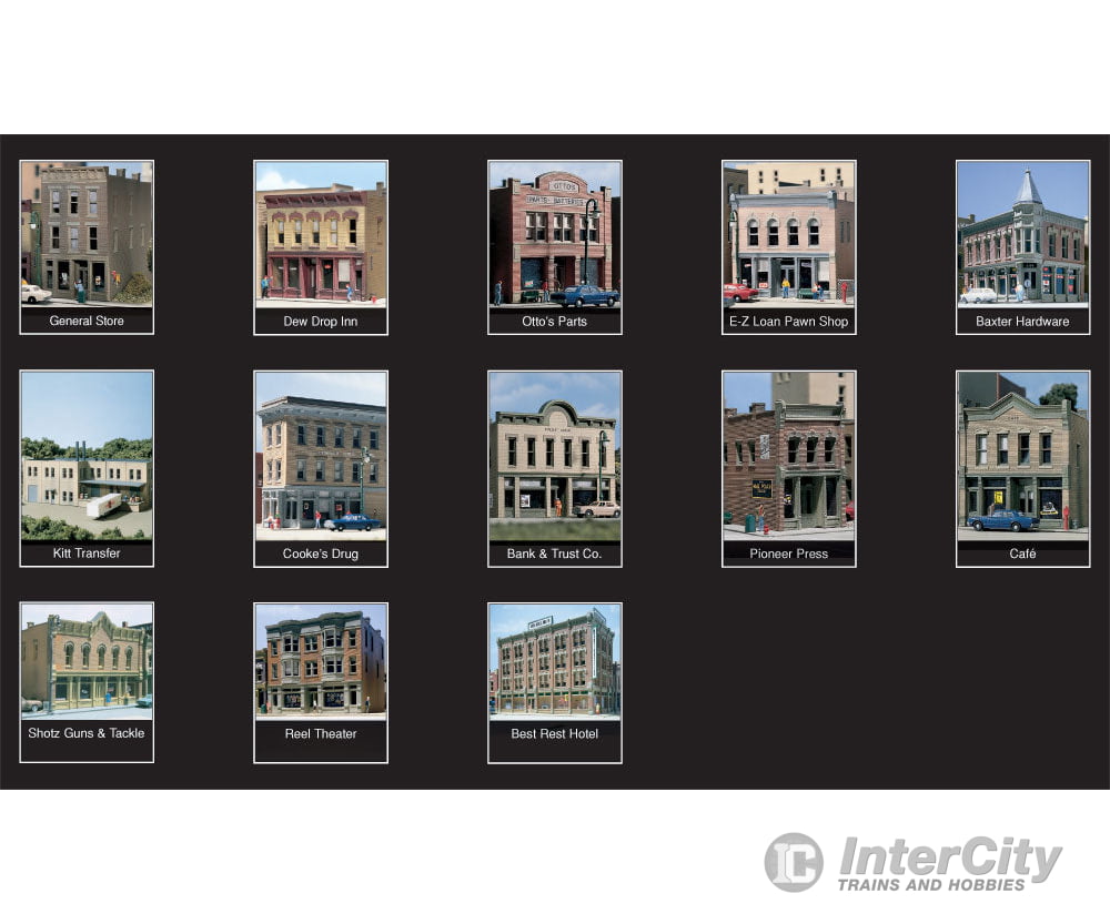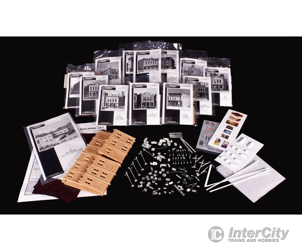 A collection of 13 individual, architecturally detailed N scale building kits. The kit includes more than 99 detailed accessories and 60 Dry Transfer Decals. Though created to complement Scenic Ridge® Layout Kit, these buildings will create an authentic city environment on any layout.