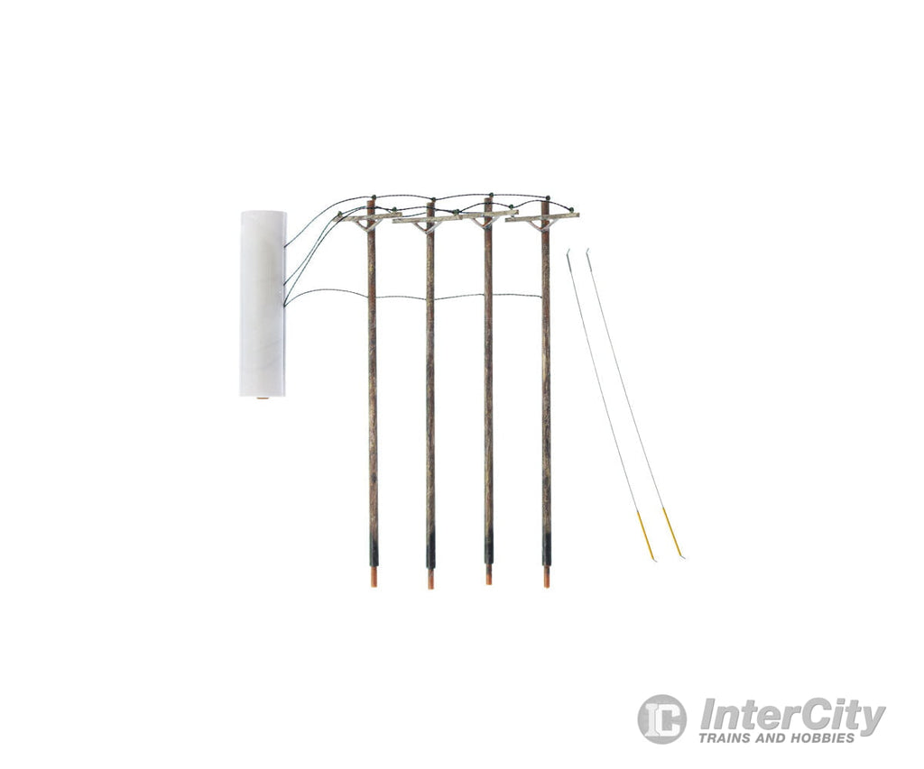 Place O Scale Single Crossbar Pre-Wired Poles down city streets to model power poles and give your layout an added layer of realism in minutes. Loaded with details, Pre-Wired Poles are easy to install. Simply drill holes, then slide the poles and plant them in place.