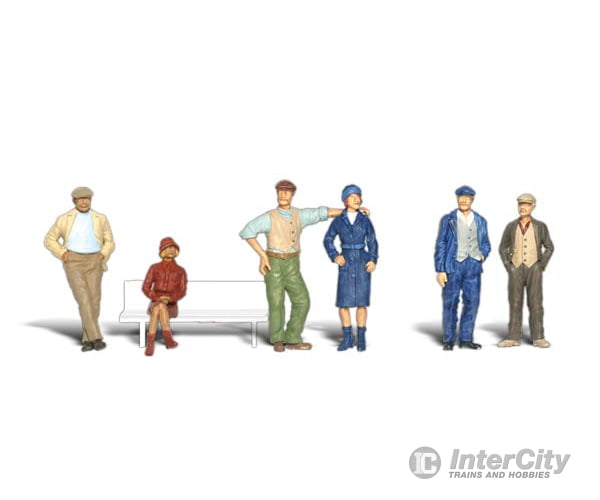 A set of two women and four men - the men and one woman are standing and one woman is sitting.