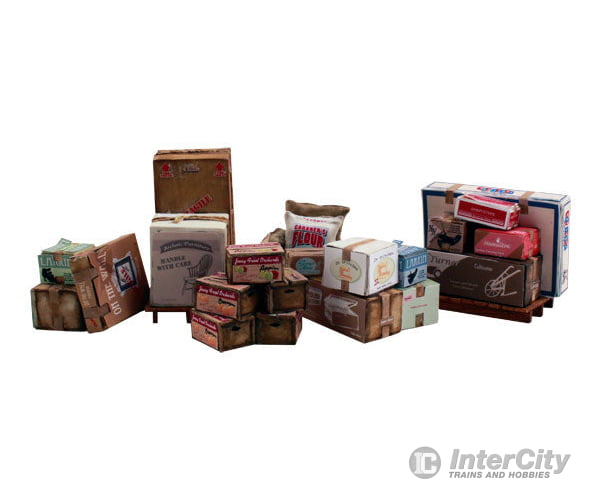 Tons of freight move daily through every part of America. You'll find it stacked on industrial loading docks, aside packing houses, on harbor docks or at train depots. This figure set includes an assortment of colorful, highly detailed crates, boxes, bags and sacks of varying shapes and sizes.
