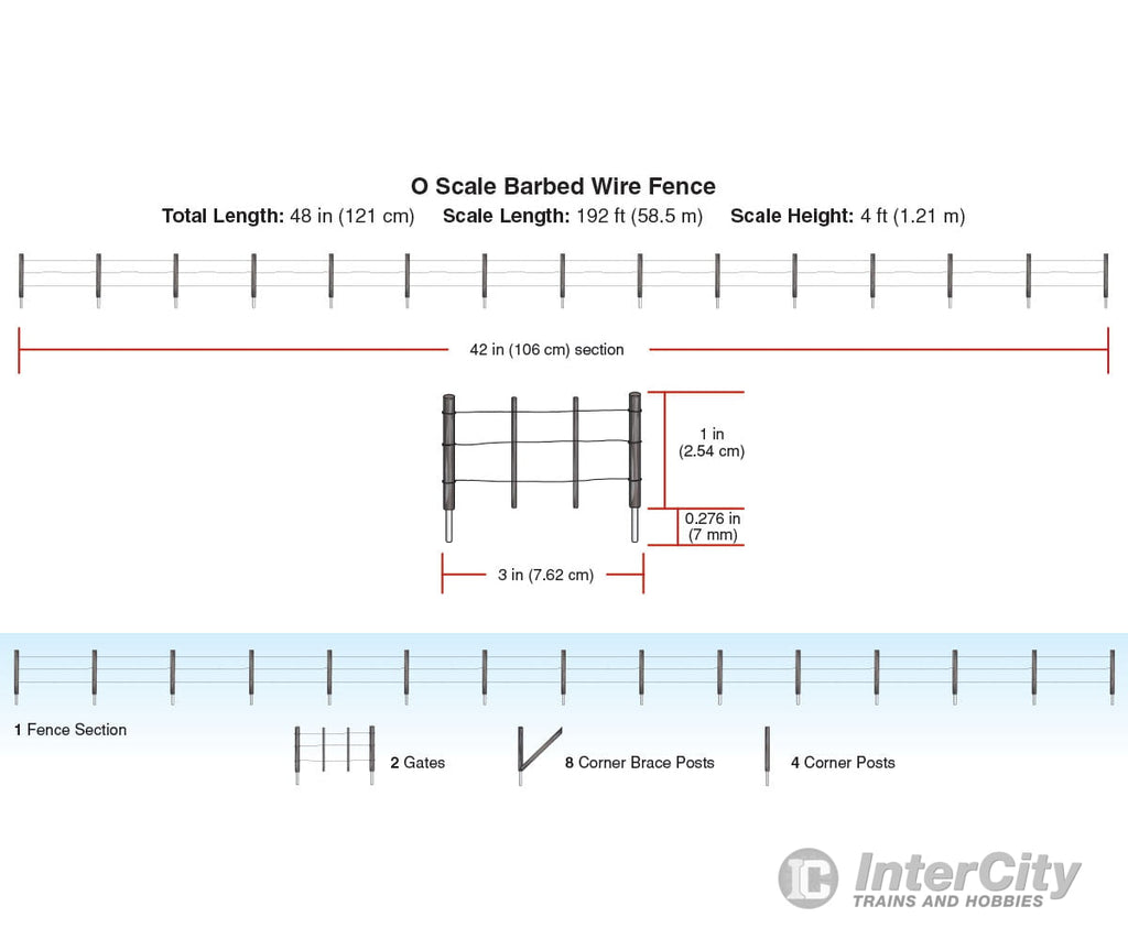 The total length of this fence is 48" (121 cm), which represents 192 scale ft (58.5 scale m). The scale height is 4 ft (1.21 m).