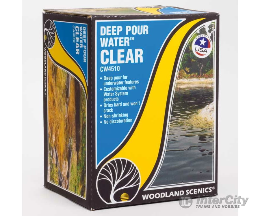 Create underwater features with Deep Pour Water and Water Undercoats for submerged water scenes or to imitate depth. Add Water Tints when modeling any aquatic ecosystem and Surface Waters for the illusion of water movement and undeniable realism. Deep Pour Water dries hard and won't crack, is non-shrinking, and will not become discolored over time.