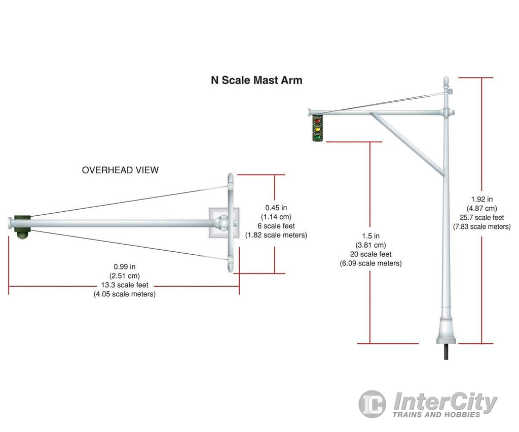 - 4 Mast Arm Traffic Lights (2 red / 2 green) each with 36 in (91.4 cm) wire