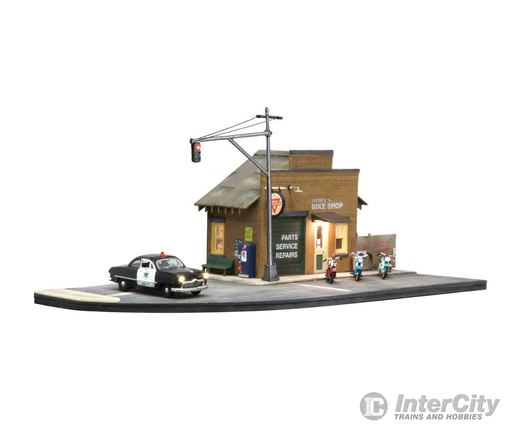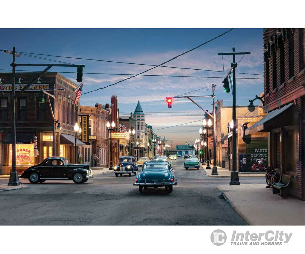 The Mast Arm Traffic Lights hang over part of the intersection and are used for intersections located on suburban or small-town roads. They are ready to place right out of the package. They're hand-painted and authentically weathered. The Traffic Lights are pre-wired and made for use with the Just Plug® Lighting System.