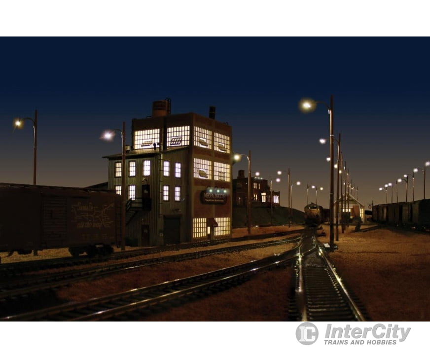 Use to light depots, rail yards, alley ways, sidings, parking lots and more. Includes extension poles to make the light poles taller for a broader reach. Wooden Pole Street Lights are compatible with the Just Plug® Lighting System. Use one Light Hub PORT per set.