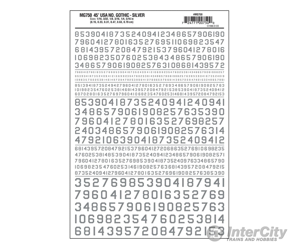 Number sizes: 1/16", 3/32", 1/8", 3/16", 1/4", 5/16" (1.58 mm, 2.38 mm, 3.17 mm, 4.76 mm, 6.35 mm, 7.93 mm)